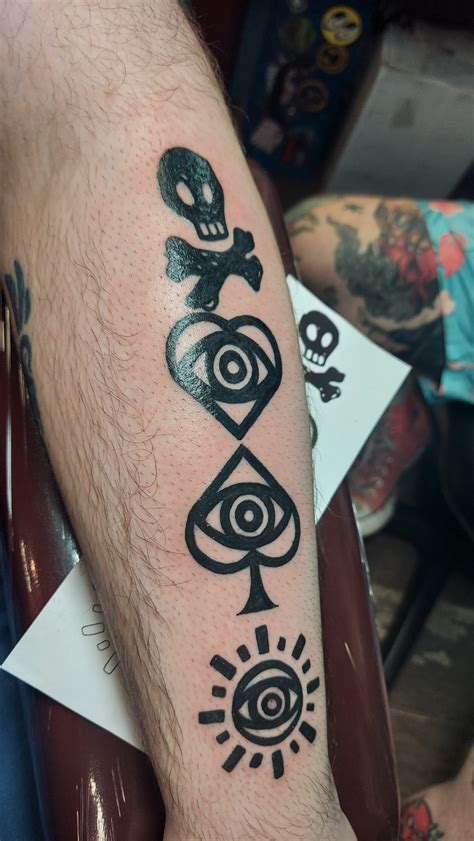 5.6 as part of a full body design. Alex's second tattoo was an image of the band's logo, a skull and cross bones. He has many tattoos, several on his arms and one on his chest about his grandmother who passed away. 4 things to consider when choosing the design. The meaning behind this tattoo is very simple;