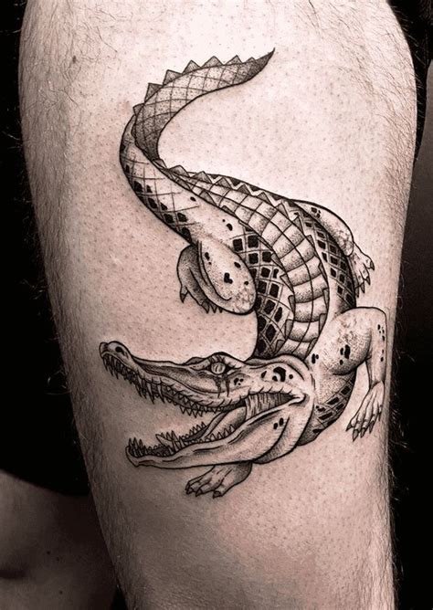 Donning alligator tattoo would mean representing focus, status, balance and even fearless attitude and brevity. The alligator tattoo is symbolic of being stealth, powerful and represent hidden danger. Sak yant thaerawad / jorakhae alligator crocodile tattoo design. Choose from alligator tattoo designs stock illustrations from istock. The crocodile is yant that signifies strength and power offers protection from all types.