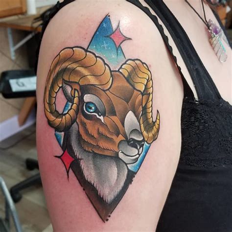 Aries ram tattoo designs are usually depicted with a ram head, and there is a good reason for that. Of course, you can also pair aries tattoos with other zodiac signs. Aries sign on shoulder 4. Amazing colorful aries tattoo flash. We've got everything from ram tattoos, constellations, and so much more.