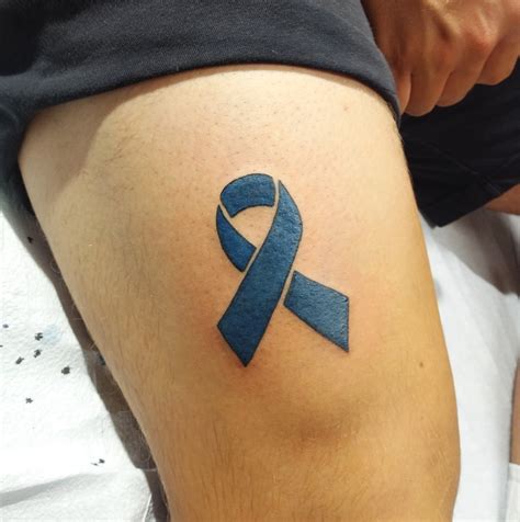 The dark blue ribbon is an indication of colon cancer and a tribute to the survival or battle with that disease. Another common cancer ribbon that is applied as a tattoo. Free returns 100% satisfaction guarantee fast shipping See more ideas about cancer tattoos, tattoos, colon cancer tattoos. It spreads awareness and shows that you are standing true to.