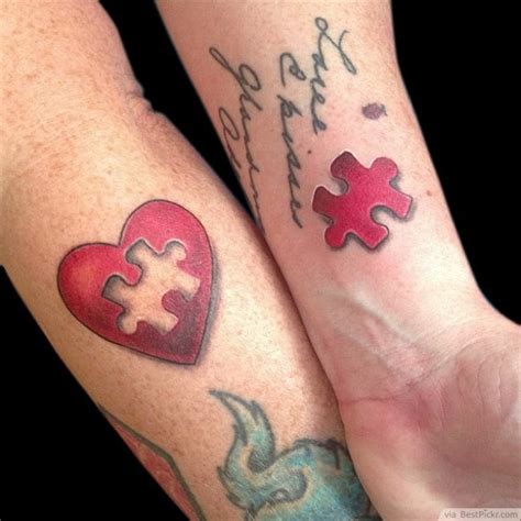You can use your favorite phrases or words and have them inked separately to show how perfect you look when. The puzzle piece tattoos are representative of autism. The best example is a tattoo that shows a puzzle piece missing from one person on the arm of the other. A couple puzzle piece tattoo is an excellent way to represent.