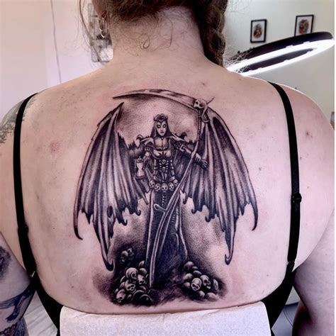 If you’ve made your peace with the idea of death being a part of life, say it with a tattoo depicting the grim reaper. Man can try inspirational quotes like this too for tattoos. Black & grey flying angel of death tattoo on back. See more ideas about tattoos for guys, tattoos, cool tattoos. If you’re an enigmatic gent with.