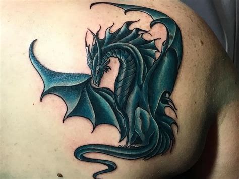 These tattoo designs can even consist of surroundings and settings from the. He has a bearded face, horns and a fire breathing tongue. You must be logged in to post a comment. Dragons have always been a popular tattoo design. This gothic tattoo is covered in black ink and is very well shaded.