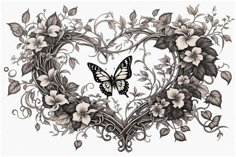 Heart With Vines Tattoo Design, I'm in the middle of adding on to it right now. Flower tattoos are mostly favored by women, they are like clothes accessories except that you can wear your tattoo to bed.