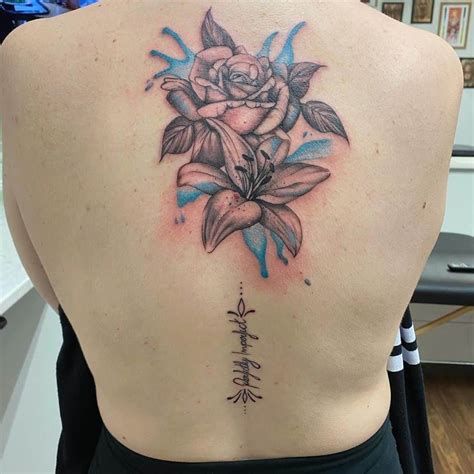 Black is traditionally used when a man gets a rose tattoo. The lily near a coffin symbolizes death. Bright & colorful lily and rose tattoo back design. Individually wrapped in cellophane sleeves. The rose is a flower that symbolizes both beauty and devotion, but also envy.