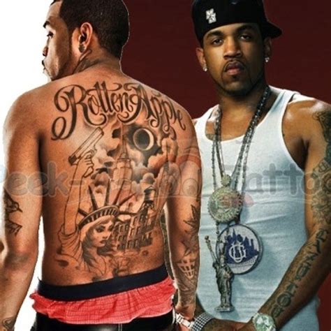 Lloyd banks has an extensive amount of tattoo artwork on his body including, a full back piece which contains a backdrop of new york city with the statue of liberty holding a handgun, along with the words rotten apple. Lloyd banks back tattoo rate 1000s of pictures of tattoos, submit your own tattoo picture or just rate others I was.