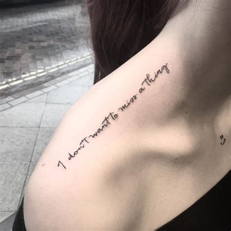 When the blood kisses the ink. The lyric tattoo is a perfect choice for people who wish to tell a lot about themselves through their ink without having to get a large and detailed design. If you are attached to a word, phrase, or lyric, a small quote tattoo is an amazing way to experience it forever. Show me yours,.