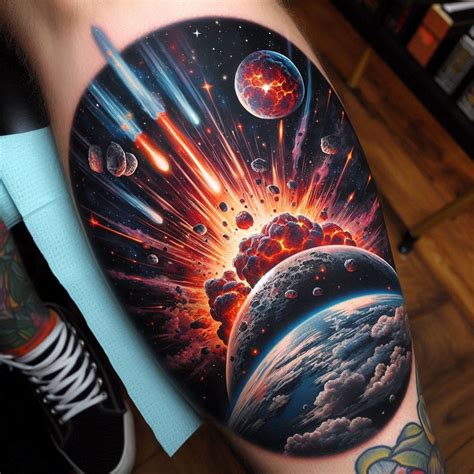 Burning meteor tattoo