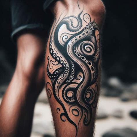 Black and grey octopus tattoo design for leg. 7 years ago 7 years ago. Octopus tattoos project the octopus reputation, in wildly realistic images that are drawn from shoulder to sholder, or entwined on the arm or the legs. The artist may apply it on the lower back with its tentacles wrapped around the hips to reach the spine or.