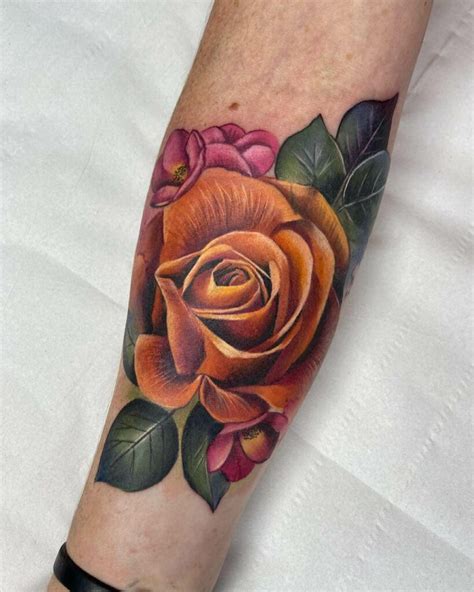 A person who has lost a loved one will often get a black rose tattoo to remember them. Apply to tumblers like you would apply any temporary tattoo. 3 awesome orange rose tattoo on shoulder images and designs. Orange roses exude excitement and a zest for life. Other styles orange medium for men flowers & nature rose neck cool colors.