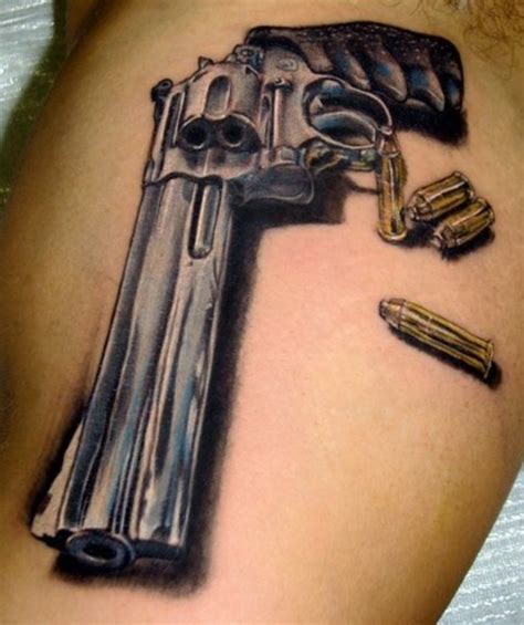 In the design, the bullet jas already been shot at someone. Popular themes for killer gun tattoos are guns and roses, skulls, machine guns and traditional rifles and pistols. The colt.45 military sidearm is a classic american firearm, and widely considered by generations of american veterans as the finest and most powerful military sidearm ever issued. Prisoners would use ink.