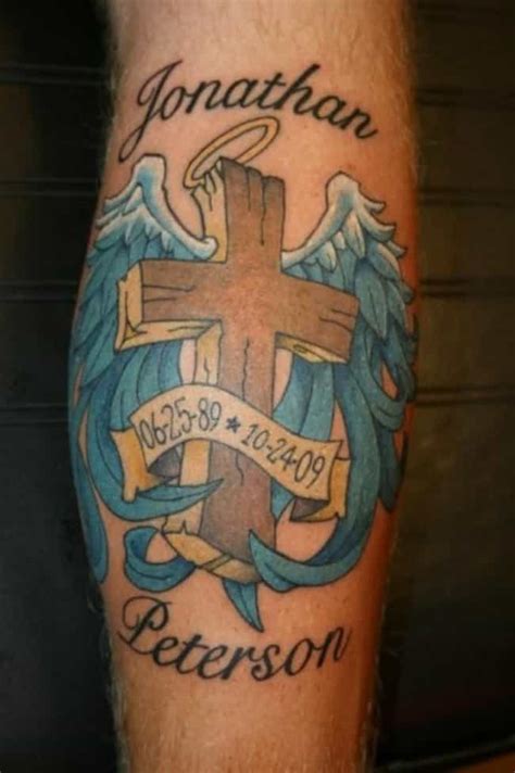 One of the most common images is that of a cross or crucifix, either with or without the loved one's name or birth/death dates printed in a banner wrapped around the cross. This list rounds up unique and touching ideas for memorial and rip tattoos, from the intricate and colorful to the abstract and monochromatic. See more ideas about cross.
