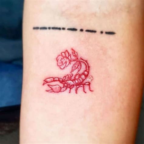 If you are a fan of modern and colourful tattoo designs, this red and black scorpion tattoo idea looks the best. There are roman numerals meaning any important date or even the person’s birthdate! Placement of scorpion tattoo can make it really great. Because of its small size, you can get it practically on every part of your body. Scorpios.