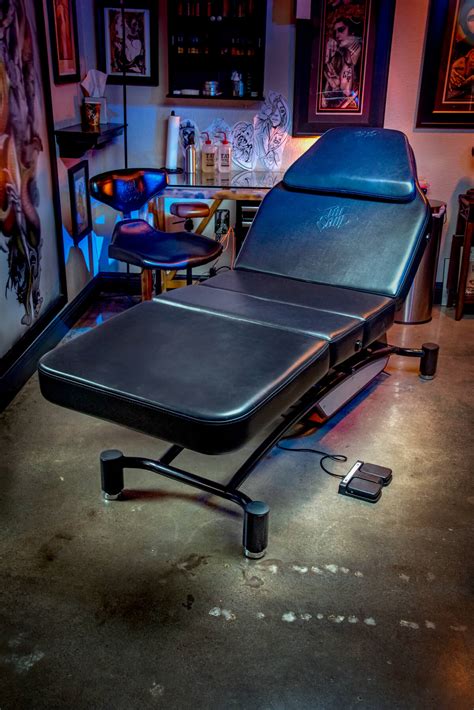 Upholstered in pvc vinyl hydraulic pump has a 1.58 shaft diameter with a 7.7 stroke height adjustment from 23.5 to 30 back rest adjustment from 0 flat to 65 degrees. Black electric tattoo massage facial table bed chair barber beauty spa salon equipment. If your artist sent you home with adhesive wrap, you can leave that on the tattoo overnight.