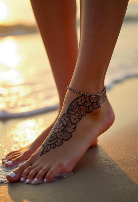 Black tattoo elastic stretch bracelet anklet elastic daisy lace bracelet anklet gothic punk 80s 90s. See more ideas about anklet tattoos, ankle tattoo, ankle bracelet tattoo. Other anklet designs include ocean waves, trees, stars, and seashells. Here are some of the designs that are worth considering: But larger designs also come with bigger budget.