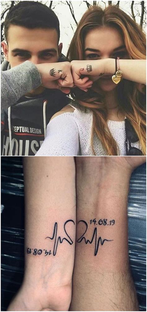 Arrow and heart wrist tattoo. The arrow points straight to the heart waiting for cupid’s bow to fire and ignite the spark! Small tattoos ideas for couple on finger. Small crown tattoo ideas for couples on hand. One more interesting place is chest.