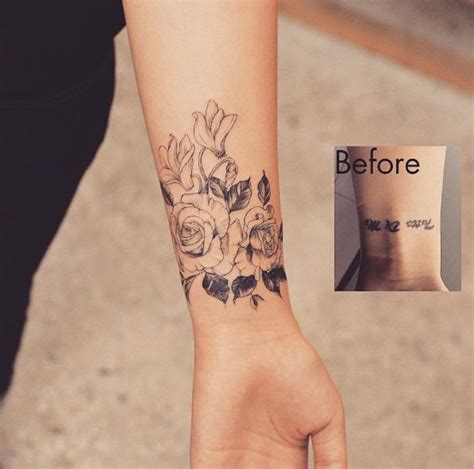 Apply a waterproof concealer directly onto the tattoo. Secondly, flower tattoos, bracelet tattoos, cross tattoos or zodiac sign tattoos are some of the best wrist tattoo designs that can be used to cover up older tattoo or text tattoo. Rose tattoo is one of the most popular designs for women. Many get them as a memento of a time, place,.