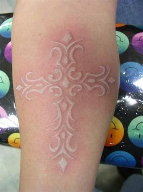 Celtic features and patterns don’t only look great, it also brings out such a magnificent outlook of the design. White ink tattoos are pretty much the most unique tattoos that you can get! It looks cool much like an imprint and is almost barely noticeable, but once it does get seen, the beautiful white cross never fails to leave a.